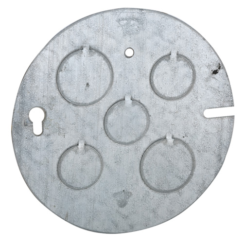 RACO® Concrete Ring Cover, 5 Knockouts, 1/2 and 3/4 in Knockouts, Steel, Pre-Galvanized, 4-1/2 in H x 4-1/2 in W x 0.08 in D