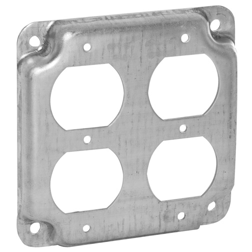RACO® Square Exposed Work Cover, Crushed Corner, 2 Outlet, Duplex, 6.5 cu-in, Steel, Pre-Galvanized, 4 in H x 4 in W x 1/2 in D