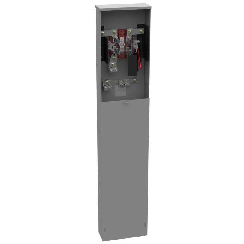 Milbank® U1748-OMilbankĀ® Ringless Single Position Meter Socket Pedestal With Lever Bypass, 4 Jaw, 600 VAC, 320 A, 1 Phase, Underground Feed, Plain Top