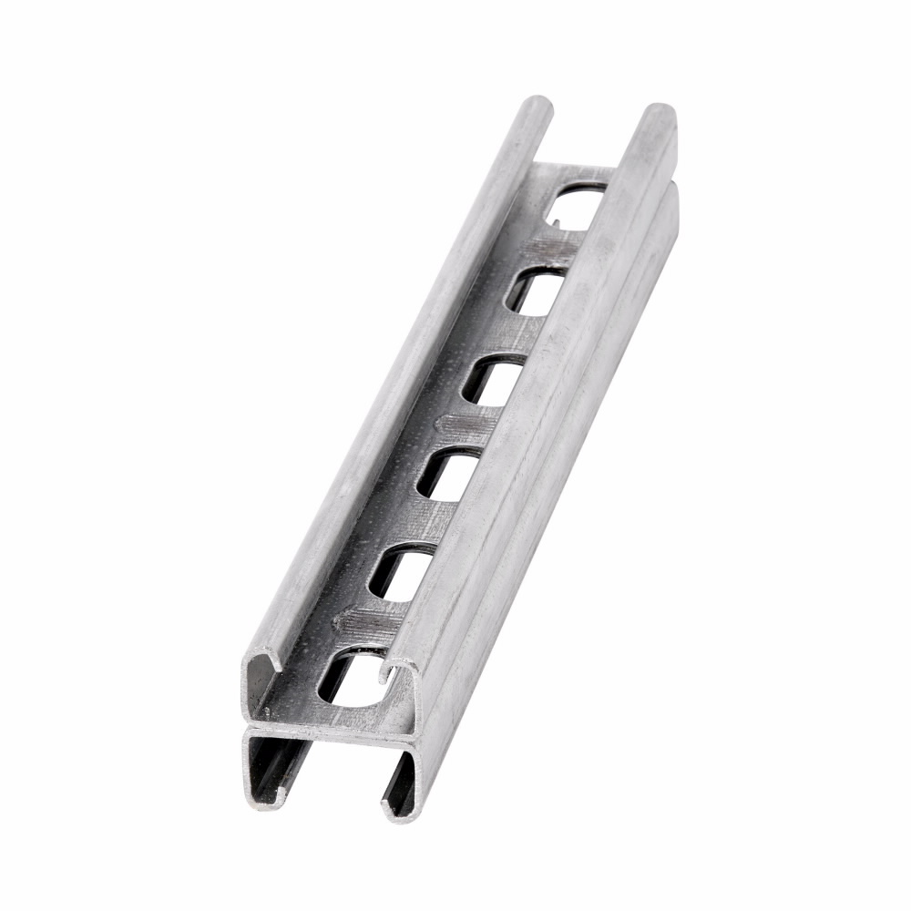 B-Line Metal Framing Channel, Back to Back Slotted, 1-5/8 in Width, 1-5/8 in Depth, 10 ft Length, 14 ga Thickness, 9/16 x 1-1/8 in Slot, 2 in Slot Spacing, ASTM A653 Cold Formed Low Carbon Steel, Pre-Galvanized