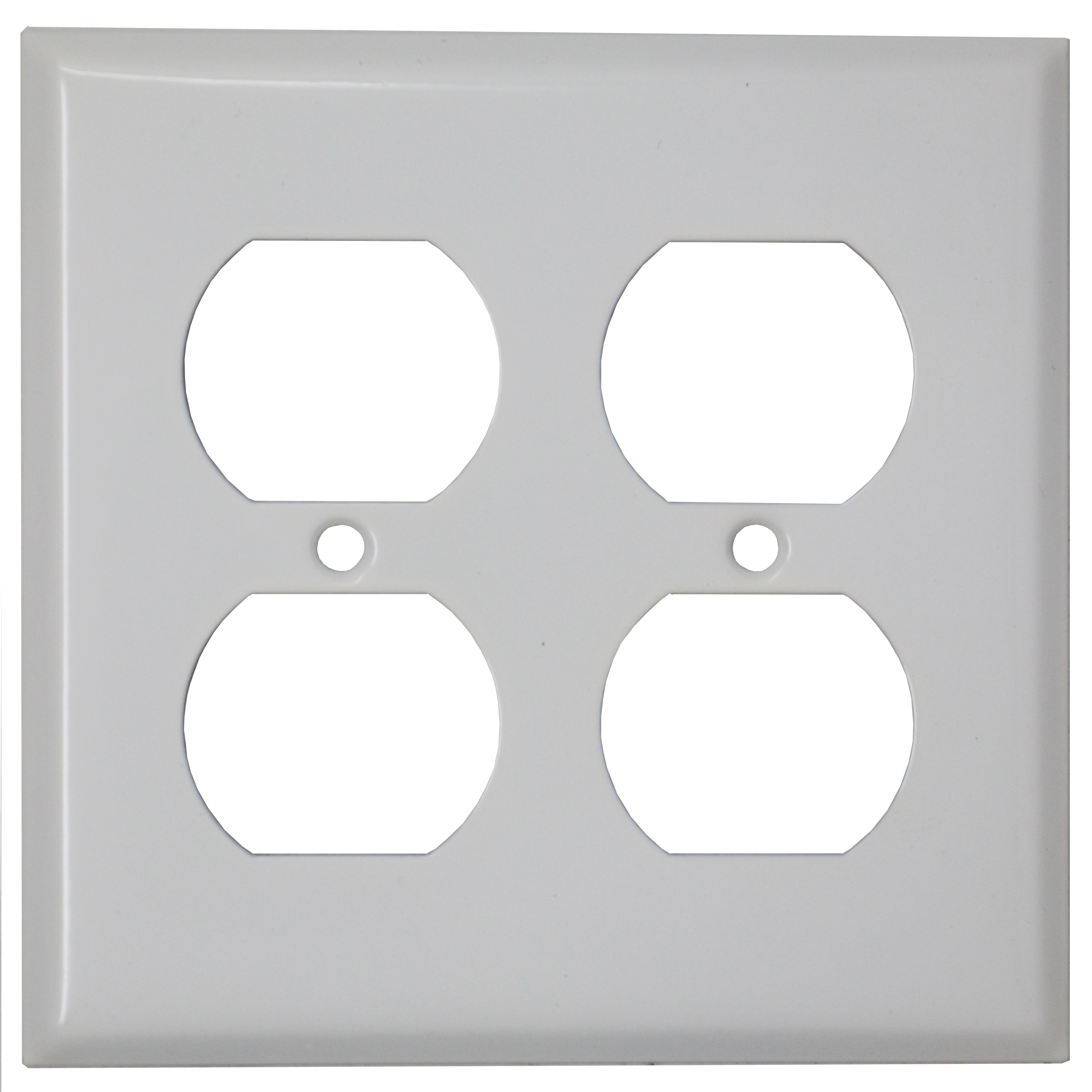 Mulberry Duplex Receptacle Wallplate, 2-Gang, Oversize Size, Device Mount, Steel, White, Smooth Semi-Gloss Finish