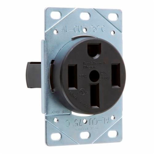 Pass & Seymour® Straight Blade Receptacle, Grounding, 125/250 VAC, 50 A, 3 Pole, 4 Wires, NEMA 14-50, Industrial/Specification Grade, Thermoplastic, Black, 3.8 in H x 2.5 in W x 2.2 in D
