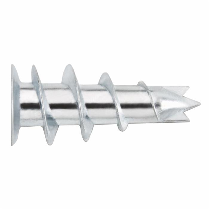The Zip-It anchor is a one-piece self drilling anchor designed for use in gypsum wallboard for light to medium duty loads. It is available in both engineered nylon and Zamac alloy designed for use with No. 8 screws in 3/8" to 1" thick wallboard. The Zip-It Jr. is also available in engineered nylon and Zamac alloy designed for use with No. 6 screws in 3/8" to 5/8" wallboard. These fasteners are not recommended for use overhead or applications where holding values are critical.