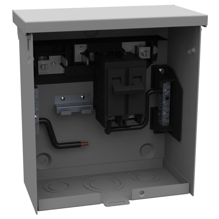 MilbankĀ® Circuit Breaker Enclosure, 120/240 VAC, 50 A, 1 Phase, 50 A GFCI Breaker Included, 14 to 1/0 AWG Wire, Surface Mount, Hasp & Latch, NEMA 3R, 7-1/2 in W x 3-3/4 in D x 8-1/2 in H