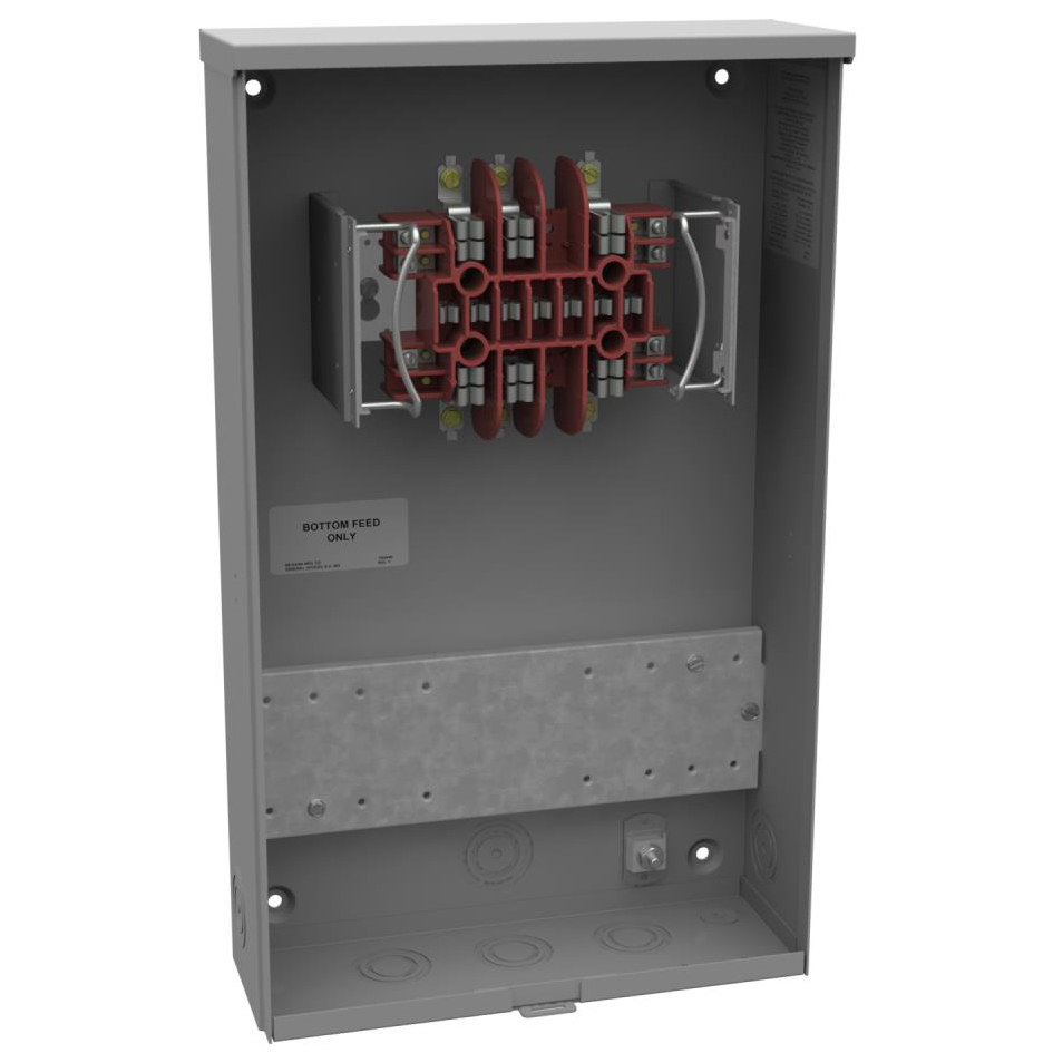 MilbankĀ® Ringless Single Position Meter Socket, 13 Jaw, 600 VAC, 20 A, 3 Phase, 60 Hz, Overhead/Underground Feed, 6 AWG to 350 MCM Wire, Plain Top, Single Mechanical Terminal, NEMA 3R Enclosure, Glass Polyester Insulation, Galvanized Steel, Powder Coat Finish, 12 in W x 4-1/8 in D x 20 in H