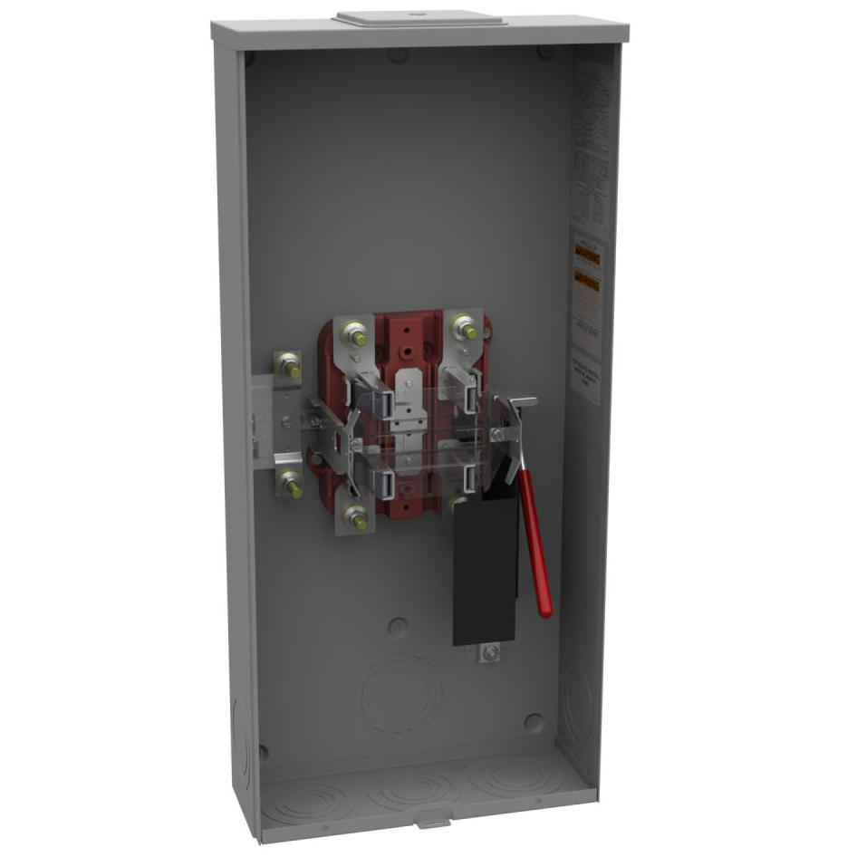 Milbank® Ringless Single Position Meter Socket With Lever Bypass, 4 Jaw, 600 VAC, 320 A, 1 Phase, 60 Hz, Overhead Feed, Large Closing Plate, Stud Terminal, NEMA 3R Enclosure, Glass Polyester Insulation, Galvanized Steel, Powder Coat Finish, 13 in W x 4-7/8 in D x 28-1/4 in H