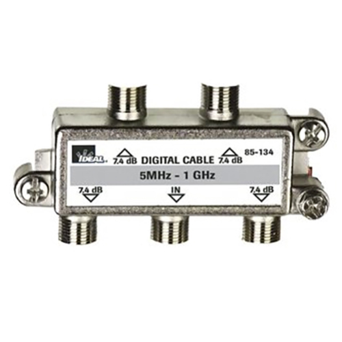 IDEAL® Digital Cable Splitter, 4-Way High Performance, F-Type Connection, 75 Ohm Impedance, 5 MHz to 1 GHz, Zinc Die Cast, Nickel Plated