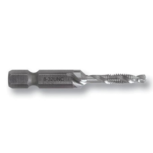 GreenleeĀ® Tap Drill Bit, Split Point, #8 Drill, #8-32 Thread, 3 in Overall Length, Hex Shank, 1/4 in Shank Dia, 10 ga High Speed Steel, Uncoated