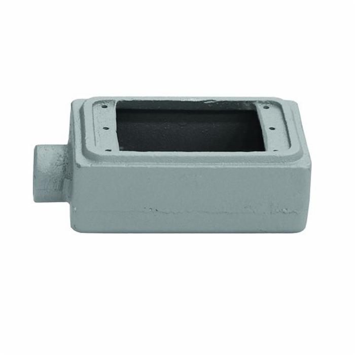 O-Z/Gedney UNILETS™ Device Box, Type FD Deep Heavy Duty, 1 Gang, 1 Outlet, 3/4 in Hub, Tapered Threaded Hub, 28 cu-in, Feraloy® Iron Alloy, Triple Coated, Gray, 4-11/16 in H x 2-15/16 in W x 3-1/16 in D