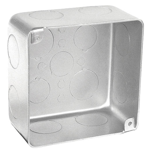 GarvinĀ® Square Plenum Box, 13 Knockouts, 1/2 and 3/4 in Conduit Knockouts, 30 cu-in, Drawn, Steel, Galvanized, 4 in H x 4 in W x 2-1/8 in D