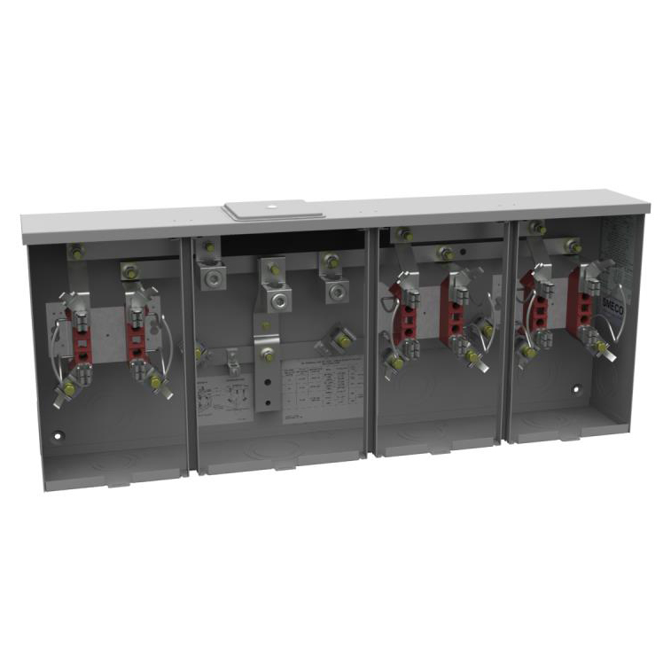 Milbank® Ringless Multi-Position Meter Socket With Horn Bypass, 4 Jaw, 3 Position, 300 VAC, 200 A, 1 Phase, 60 Hz, Overhead/Underground Feed, 4 AWG to 600 MCM Wire, Large Closing Plate, Single Mechanical Terminal, NEMA 3R Enclosure, Glass Polyester Insulation, Galvanized Steel, Powder Coat Finish, 34-2/4 in W x 5-1/8 in D x 14 in H