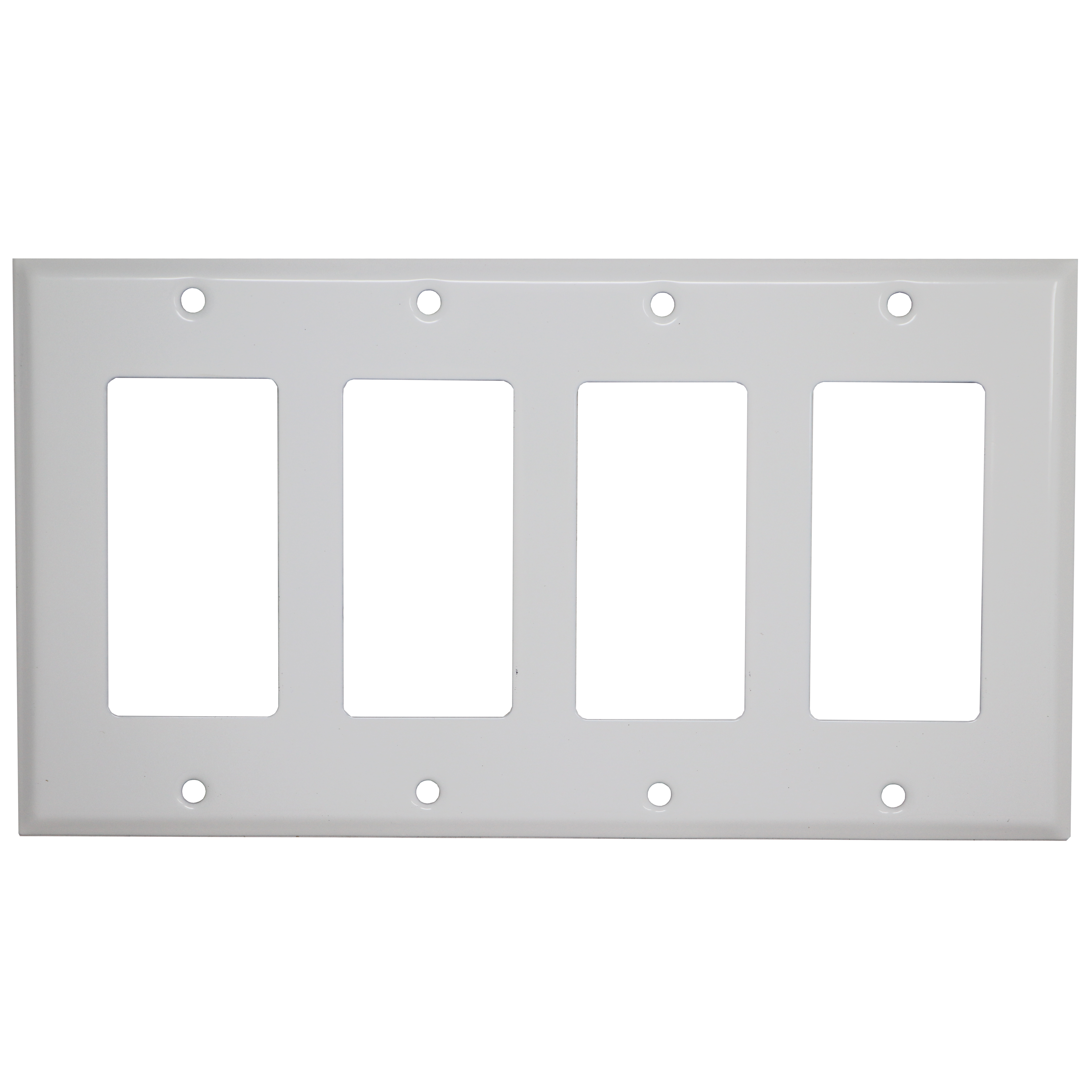 Mulberry Decorator/GFCI Wallplate, 4-Gang, Standard Size, Device Mount, Steel, White, Smooth Semi-Gloss Finish