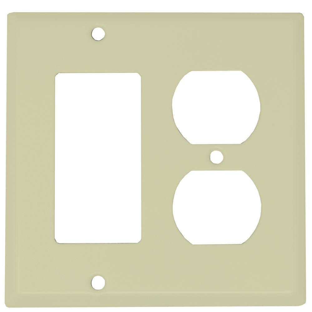Mulberry Combination Wallplate, 2-Gang (1) Decorator/GFCI (1) Duplex, Standard Size, Device Mount, Steel, Ivory, Hard Baked Wrinkle Finish