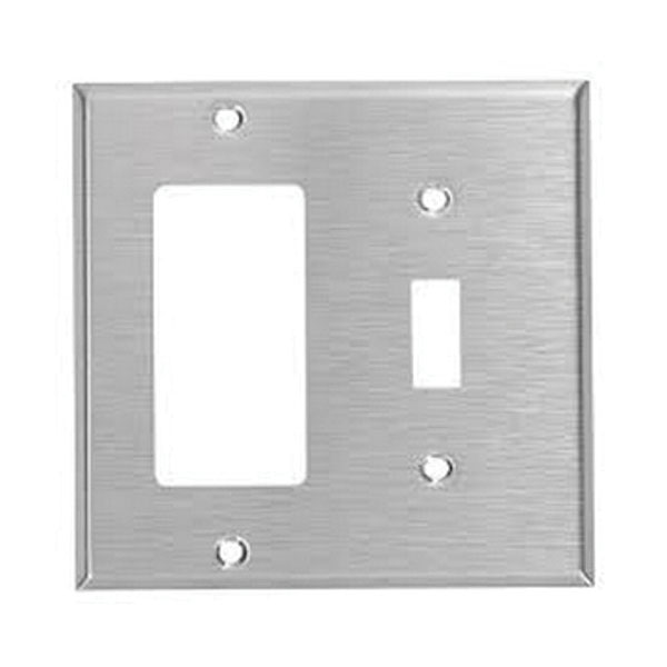 Mulberry Combination Wallplate, 2-Gang (1) Decorator/GFCI (1) Toggle, Standard Size, Device Mount, 430 Stainless Steel, Silver, Satin Finish