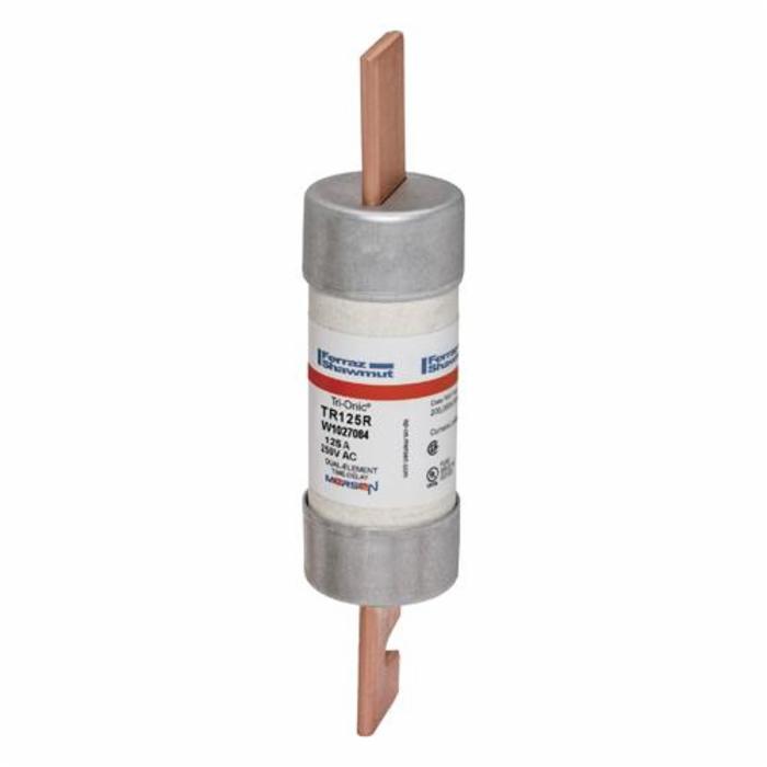 Ferraz Shawmut Tri-OnicĀ® Time Delay Fuse, Current Limiting Low Voltage, Series: TR-R, Non-Indicating, Rejection, 125 A, 250 VAC/VDC, 200/20 kA Interrupt, Class: RK5, Blade Terminal, Clip Mount, Cylindrical Body, Dual Element, Polyester, 1-9/16 in Dia x 7-1/8 in L Body Size