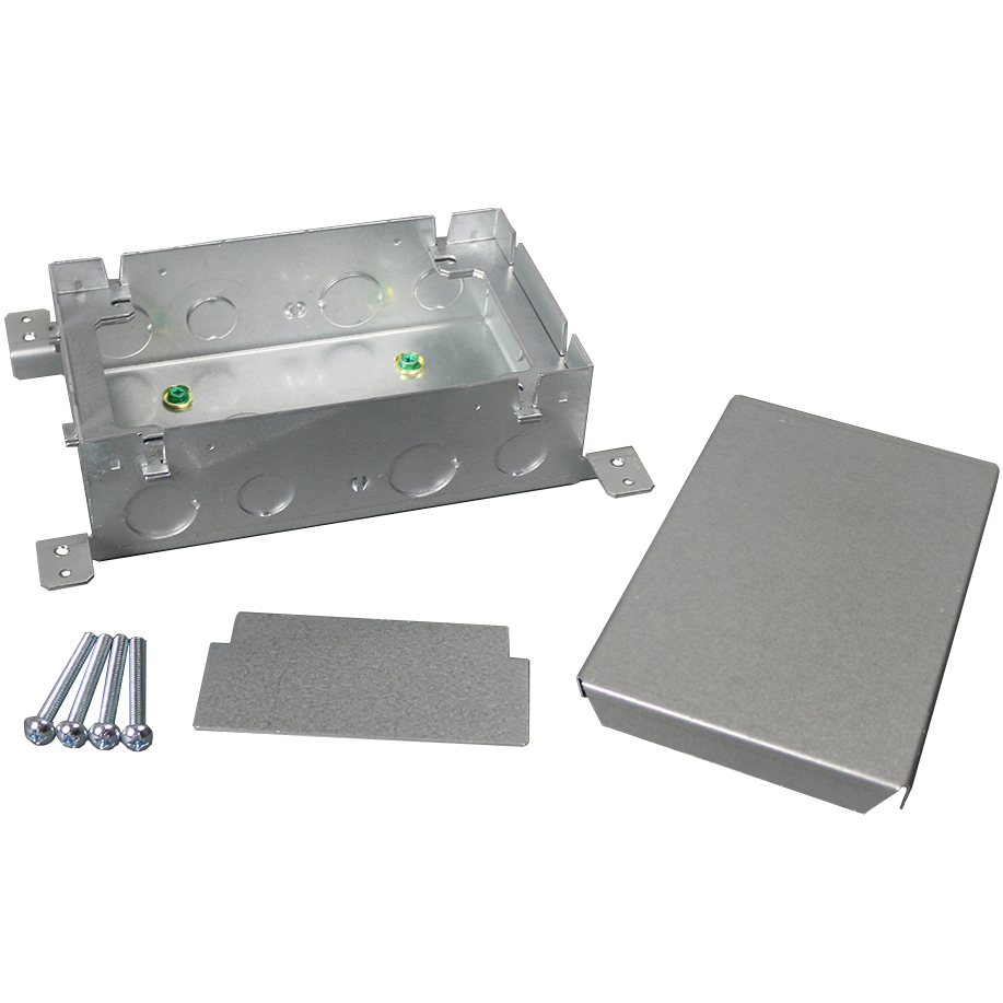 Wiremold® Floor Box, Fully Adjustable Shallow, Series: Omnibox™, 2 Gang, 16 Knockouts, 1/2 to 3/4 in Knockout, Through Floor Cable Entry, Concrete Mount, 80 cu-in, Stamped Steel, 7-15/16 in L x 4-13/16 in W x 2-15/32 in H
