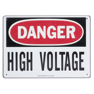 IDEAL® Danger Sign, Header: DANGER, Text Legend, Legend: HIGH VOLTAGE, Polyester, Self-Sticking Mounting, 10 in Height, 7 in Width