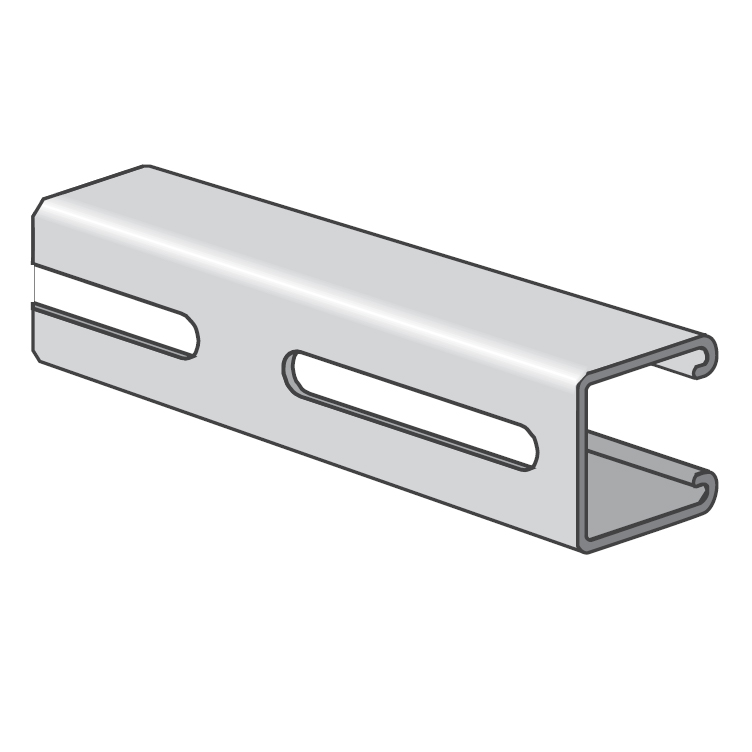 Power-Strut® Slotted Single Metal Framing Channel, 9/16 x 1-1/8 in Slots, 2 in Spacing, 12 ga THK, 20 ft L