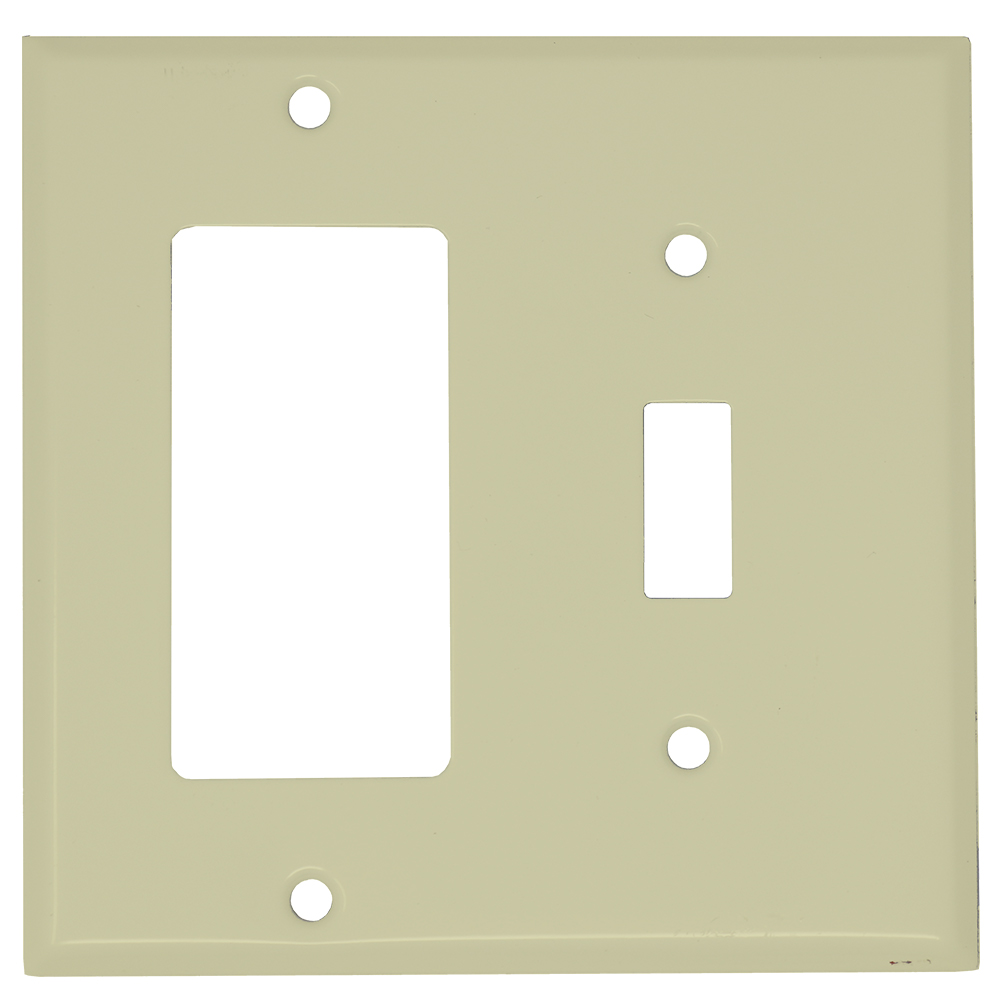 Mulberry Combination Wallplate, 2-Gang (1) Decorator/GFCI (1) Toggle, Standard Size, Device Mount, Steel, Ivory, Hard Baked Wrinkle Finish