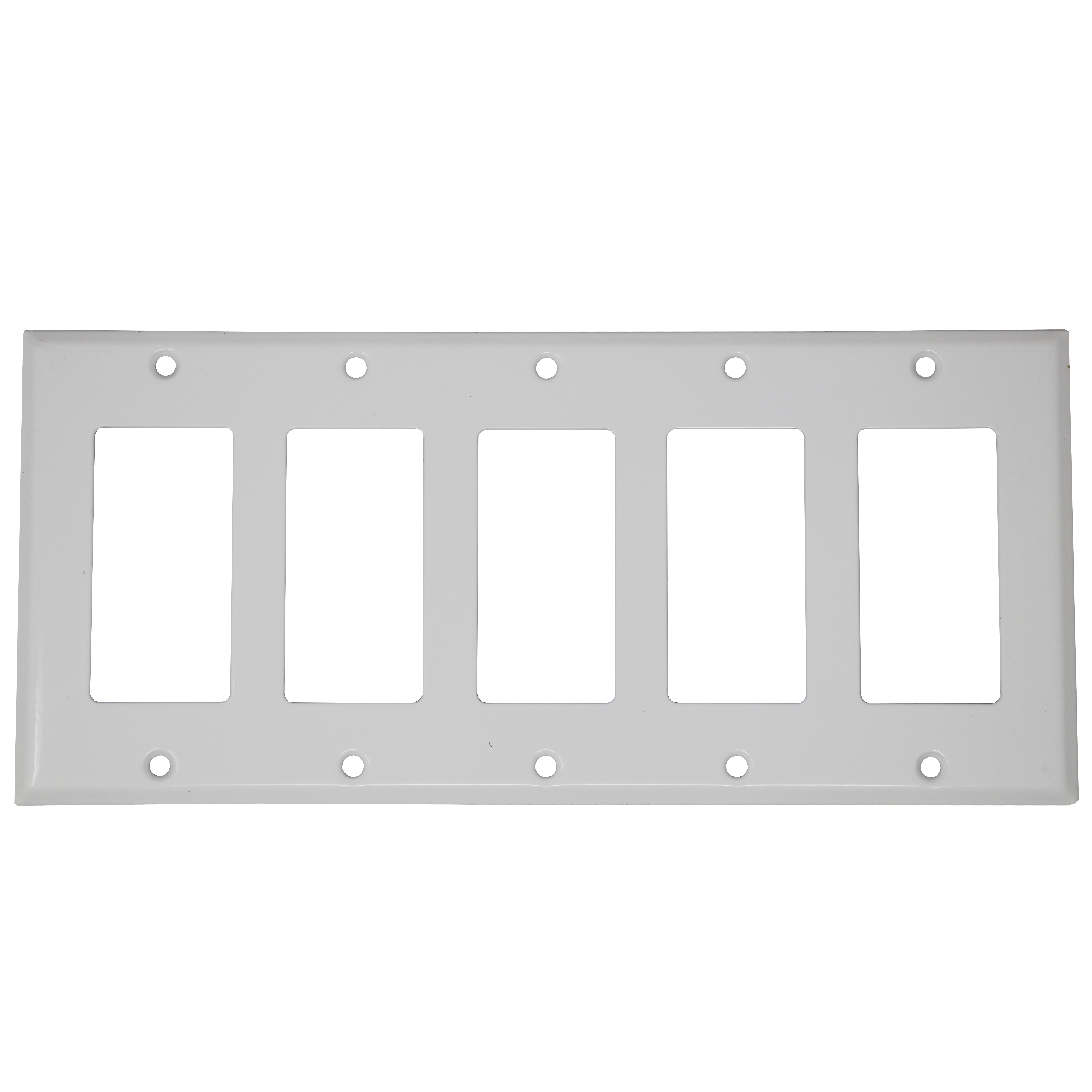 Mulberry Decorator/GFCI Wallplate, 5-Gang, Standard Size, Device Mount, Steel, White, Smooth Semi-Gloss Finish