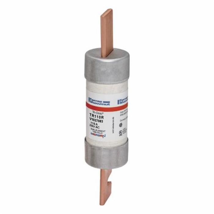 Ferraz Shawmut Tri-Onic® Time Delay Fuse, Current Limiting Low Voltage, Series: TR-R, Non-Indicating, Rejection, 110 A, 250 VAC/VDC, 200/20 kA Interrupt, Class: RK5, Blade Terminal, Clip Mount, Cylindrical Body, Dual Element, Polyester, 1-9/16 in Dia x 7-1/8 in L Body Size