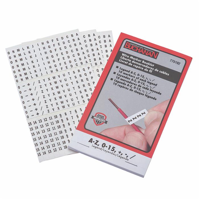 Buchanan wire marker booklet is a pocket sized booklet of legends that are self-sticking on wire and cable above and below ground and resist abrasion, moisture, dirt and oil.