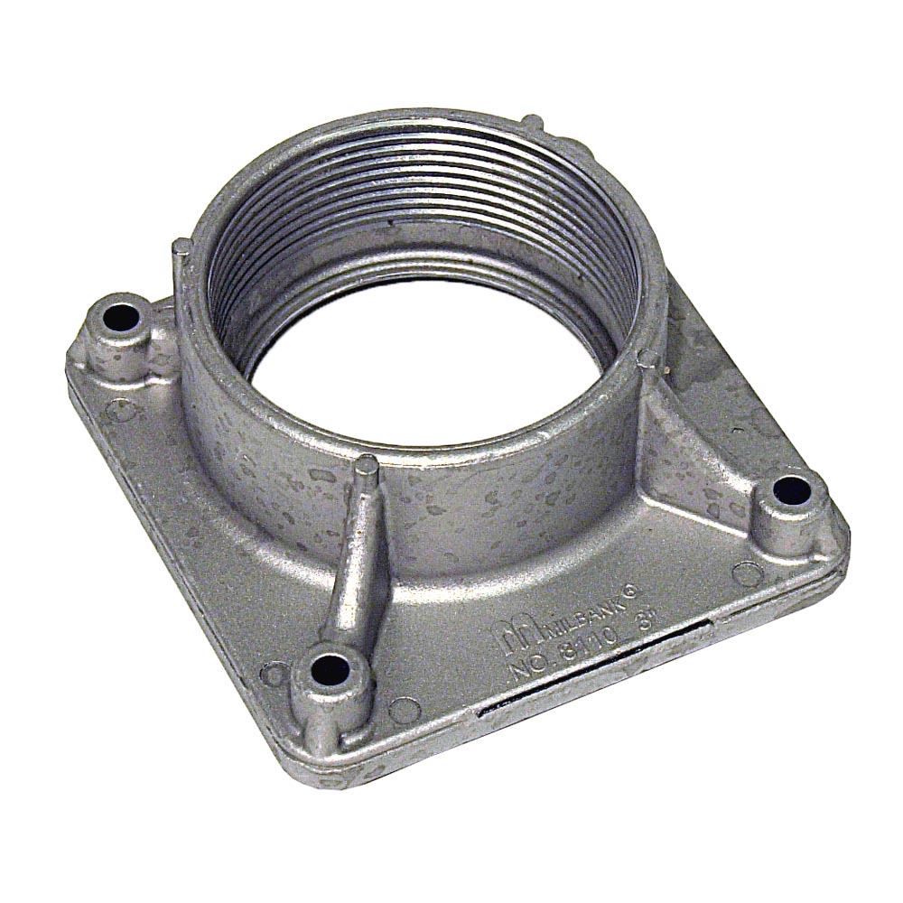 MilbankĀ® Meter Socket Hub, 3 in NPT, Threaded Mount, For Use With: Large R Opening Meter Socket, Aluminum, Painted, 5 in L x 5 in W x 1.875 in H