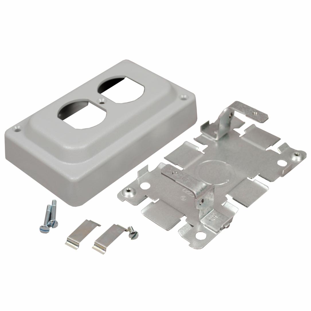 Wiremold® Receptacle Box, Duplex 1 Gang, For Use With: 1500 and 2600 Series Raceway, Nonmetallic Cover, Gray, 5-1/16 in L x 3-1/16 in W x 1-5/16 in D