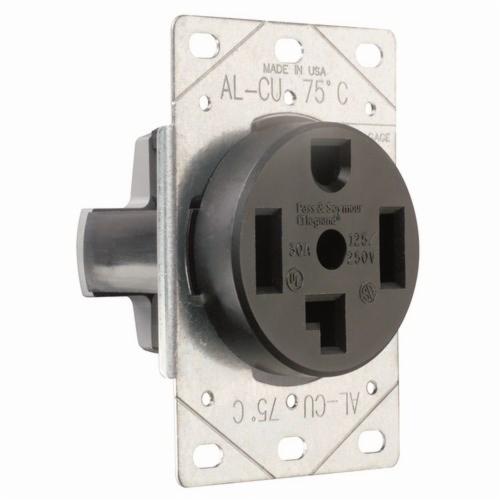 Pass & Seymour® Straight Blade Receptacle, Grounding, 125/250 VAC, 30 A, 3 Pole, 4 Wires, NEMA 14-30, Industrial/Specification Grade, Thermoplastic, Black, 3.8 in H x 2.5 in W x 2.2 in D