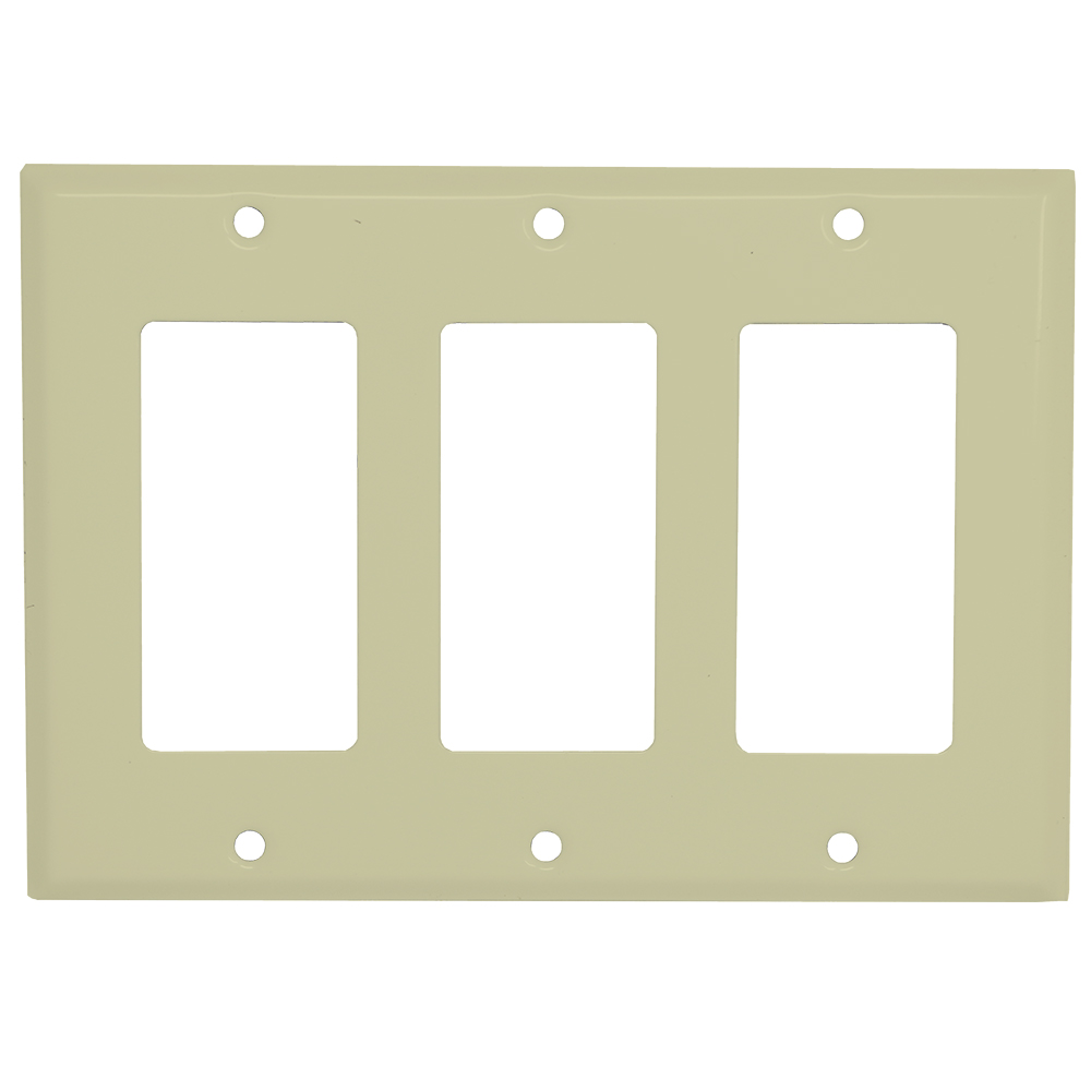 Mulberry Decorator/GFCI Wallplate, 3-Gang, Standard Size, Device Mount, Steel, Ivory, Hard Baked Wrinkle Finish
