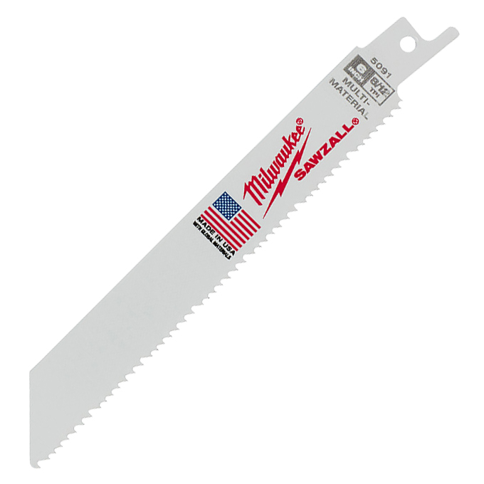 Milwaukee® Reciprocating Saw Blade, Straight Back Thin Kerf, Series: SAWZALL®, 6 in Length, 3/4 in Width, 0.05 in Thickness, 8/12, Matrix II Teeth, 1/2 Tang, Universal Tang, High Speed Steel-Co 8 Cutting Edge, Bi-Metal Body, Bright, Applicable Materials: Cast Iron, Most Metal, Plastic and Wood