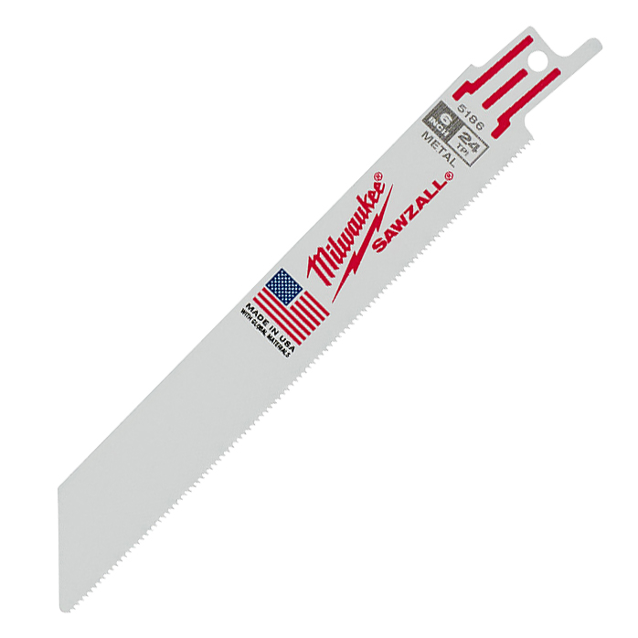 Milwaukee® Reciprocating Saw Blade, Double Duty Straight Back Thin Kerf, Series: SAWZALL®, 6 in Length, 3/4 in Width, 0.035 in Thickness, 24, Matrix II Teeth, 1/2 Tang, Universal Tang, High Speed Steel-Co 8 Cutting Edge, Bi-Metal Body, Bright, Applicable Materials: Most Metal