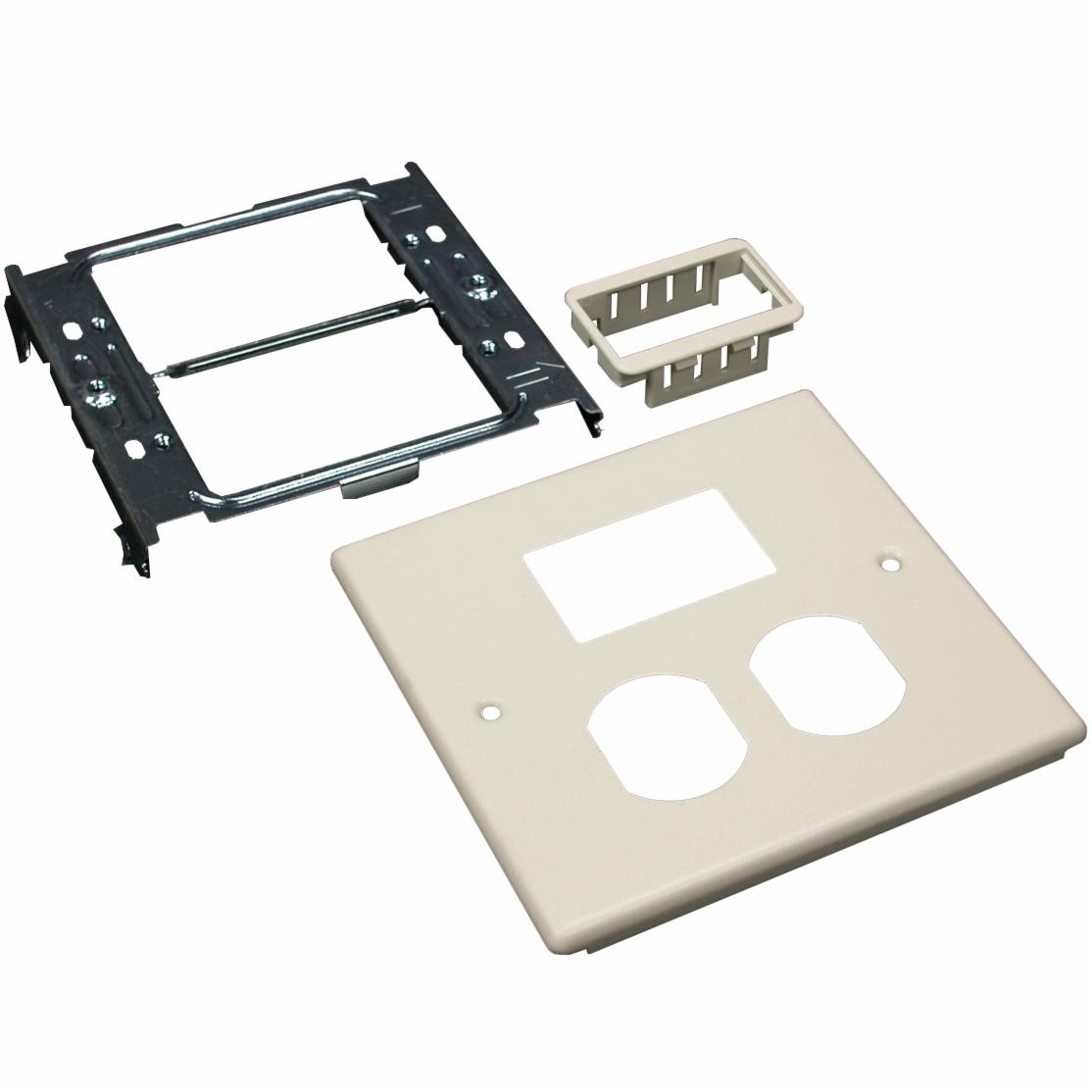 Wiremold® Overlapping Cover Plate, 2 Gang (1) Duplex (1) 2 A Mini Adapter, For Use With: 4000 Series Raceway, Steel, Ivory, ScuffCoat™, 4-3/4 in OD x 5-1/8 in L
