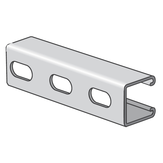 Power-Strut® Metal Framing Channel, Slotted Single, Series: PS 200, 1-5/8 in Width, 1-5/8 in Depth, 20 ft Length, 12 ga Thickness, 9/16 x 1-1/8 in Slot, 2 in Slot Spacing, Steel, Pre-Galvanized