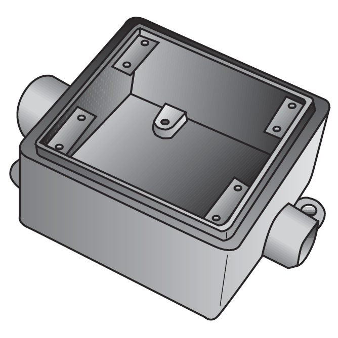 O-Z/Gedney UNILETS™ Device Box, Type FSC Heavy Duty Shallow, 2 Gang, 2 Outlet, 3/4 in Hub, Tapered Threaded Hub, 33.2 cu-in, Feraloy® Iron Alloy, Triple Coated, Gray, 4-11/16 in H x 4-11/16 in W x 2-3/8 in D