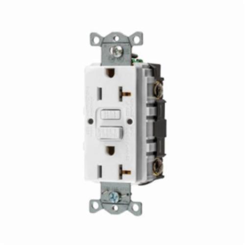 Wiring Device-Kellems AUTOGUARD® Style Line GFCI Receptacle, Decorator Duplex Heavy Duty Standard Self-Test, 125 VAC, 20 A, 1 hp, 60 Hz Frequency, 2 Pole, 3 Wires, NEMA 5-20R, Commercial Grade, -30 to 150 deg F, Back or Side Wired/Screw Terminal, Composite/Nylon/Thermoplastic, White, 3.27 in H x 1.75 in W x 1.47 in D