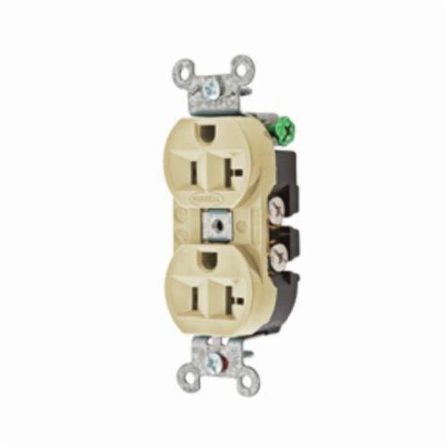 Hubbell Wiring Device-Kellems Hubbell-Pro™ Straight Blade Receptacle, Duplex Heavy Duty Self-Grounding Standard Traditional, 125 VAC, 20 A, 1 hp, 2 Poles, 3 Wires, NEMA 5-20R, Commercial/Industrial/Specification Grade, -40 to 75 deg C, Back and Side Wired Terminal, Composite/Thermoplastic, Ivory, 3.28 in L x 1.41 in W x 1.09 in H