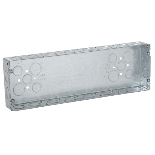 RACO® Gang Box, 6 Gang, 30 Knockouts, 1/2 and 3/4 in Conduit Knockouts, 98.5 cu-in, Welded, Steel, Pre-Galvanized, 4-1/2 in H x 14-1/16 in W x 1-5/8 in D