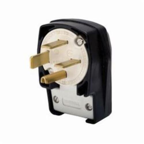 Wiring Device-Kellems Insulgrip® Straight Blade Plug, 3 Phase 4-Position Angled Heavy Duty Male Standard, 250 VAC, 60 A, 10 hp, 3 Pole, 4 Wires, NEMA 15-60P, Commercial/Industrial Grade, IP20 Enclosure, 0.625 to 1.31 in Cord Dia, -40 to 75 deg C, Screw Terminal, Composite, Black/White, 4.5 in H x 2.72 in W x 2.37 in H