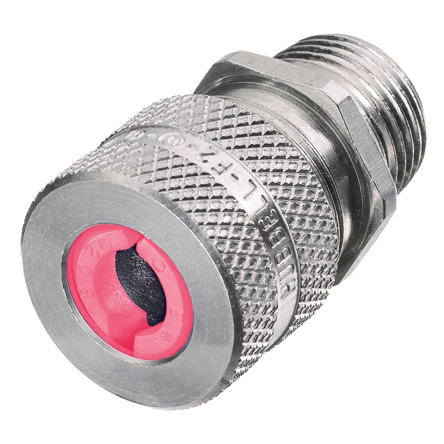 Wiring Device-Kellems Cord Connector, Form 4 Standard Duty, 1 in Trade, 1 Conductor, 1.00 to 1.13 in Cable Openings, Straight Male Connection, Aluminum, Machined, Metallic/Pink, -30 to 225 deg F