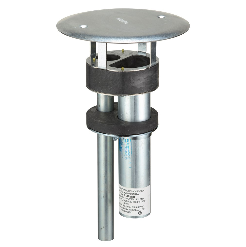 Wiring Device-Kellems ScrubShield™ SystemOne™ Poke-Through, 3-Piece Flush Standard Sized, 4 in Hole, 300 lb Capacity, Fire Rated Device, 12.61 in Length, For Use With: In-Floor Delivery Systems, Concrete Floor, SystemOne Universal Covers and Sub-Plates, 7 in Dia x 1/4 in H Cover, Die Cast Aluminum Cover, Composite, Metallic