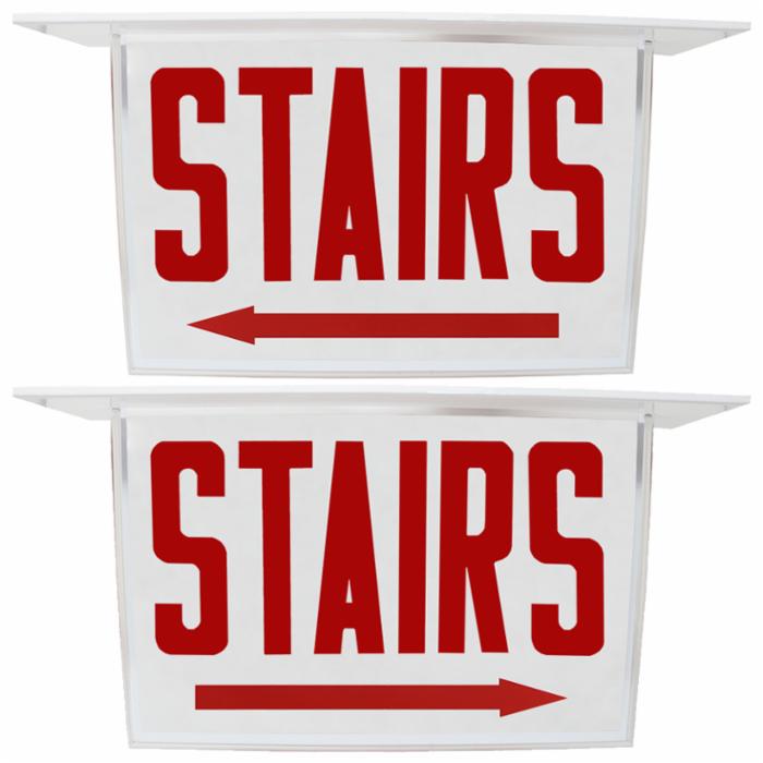 Philips Chloride Double Face Sign Panel, STAIRS Legend With Right/Left Arrow, Red Letters, White Face, Code #20