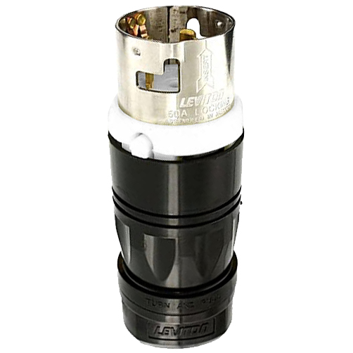 Black & White California Style Locking Plug, Industrial, 50A, 250V,-NEMA, 2P3W, Black and White