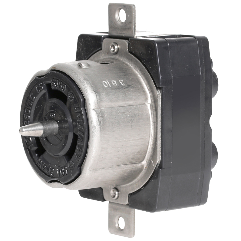 Leviton's Non-NEMA line of industrial grade locking blade devices feature rugged construction that resists impact, sunlight, chemicals and rough use. All contacts and blades are solid one-piece construction for superior conductivity. Corrosion-resistant versions feature nickel-plated contacts and blades, plus Stainless Steel shrouds and screws. The ergonomic, fluted-body design with radial gripping edge is ideal for gripping and pulling. The unique cord clamp accepts a wide range of cord sizes, providing a secure grip without damaging the cord. Plus, they are backed by a limited lifetime warranty.
