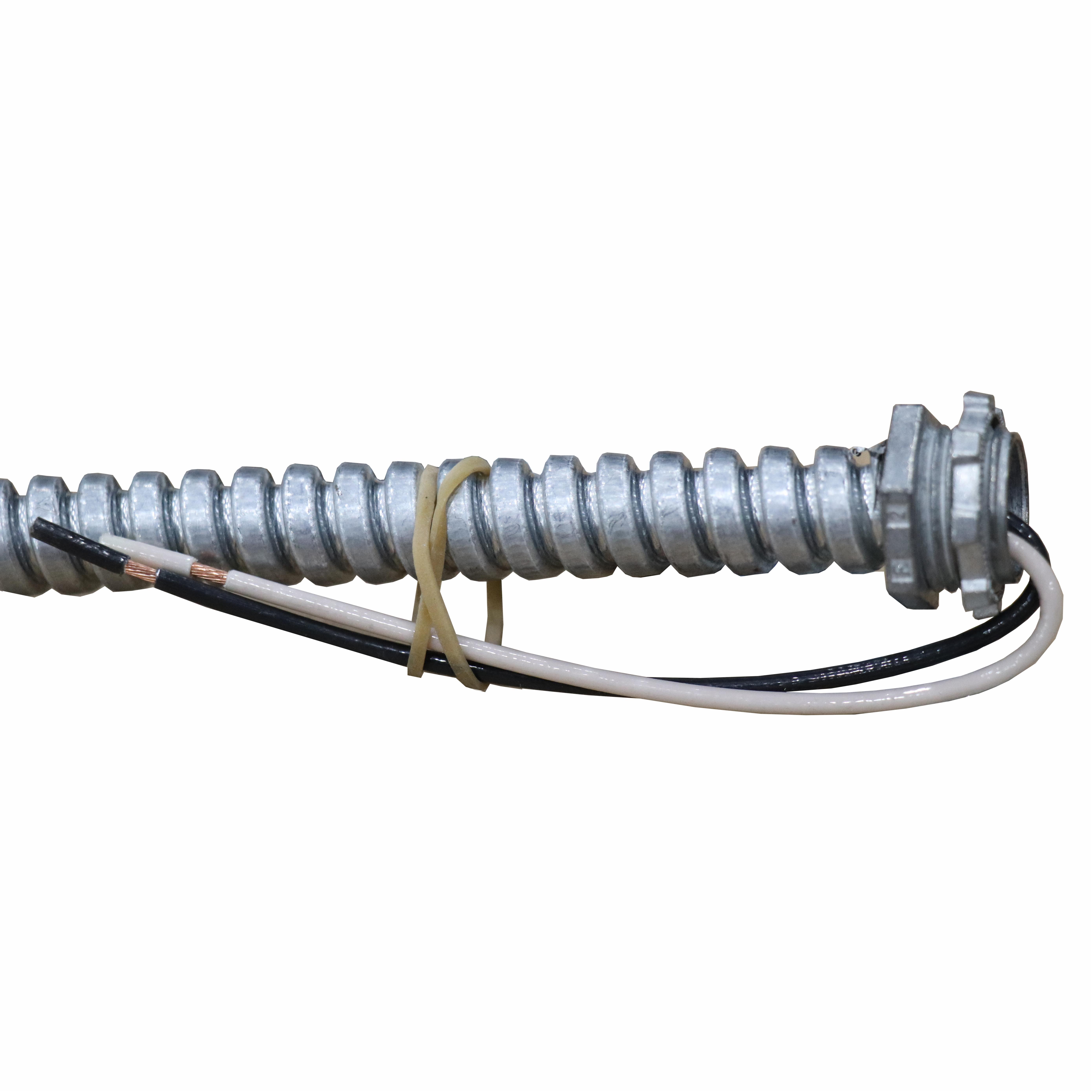 Fixture Whip, 3/8 in Dia, 6 ft L, 2 Wire, 14 AWG, Black, White