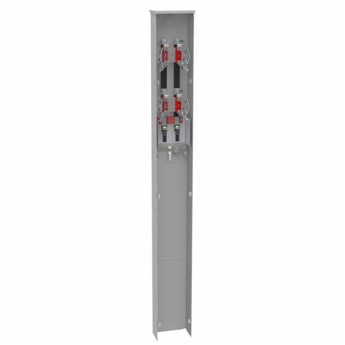 Milbank® Ringless Multi-Position Meter Socket Pedestal With Horn Bypass, 4 Jaw, 2 Position, 600 VAC, 200 A, 1 Phase, 60 Hz, Underground Feed, 6 AWG to 350 MCM Wire, Plain Top, Single Mechanical Terminal, NEMA 3R Enclosure, Glass Polyester Insulation, Galvanized Steel, Powder Coat Finish, 74 in H x 8.19 in W x 4.5 in D