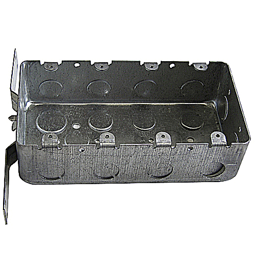 Steel City® Bracketed Gang Box, 4 Gang, 6 Knockouts, 1/2 in Conduit Knockouts, 58 cu-in, Drawn, Steel, Electro-Galvanized, Silver, 7-5/8 in L x 4 in W x 2-1/8 in D
