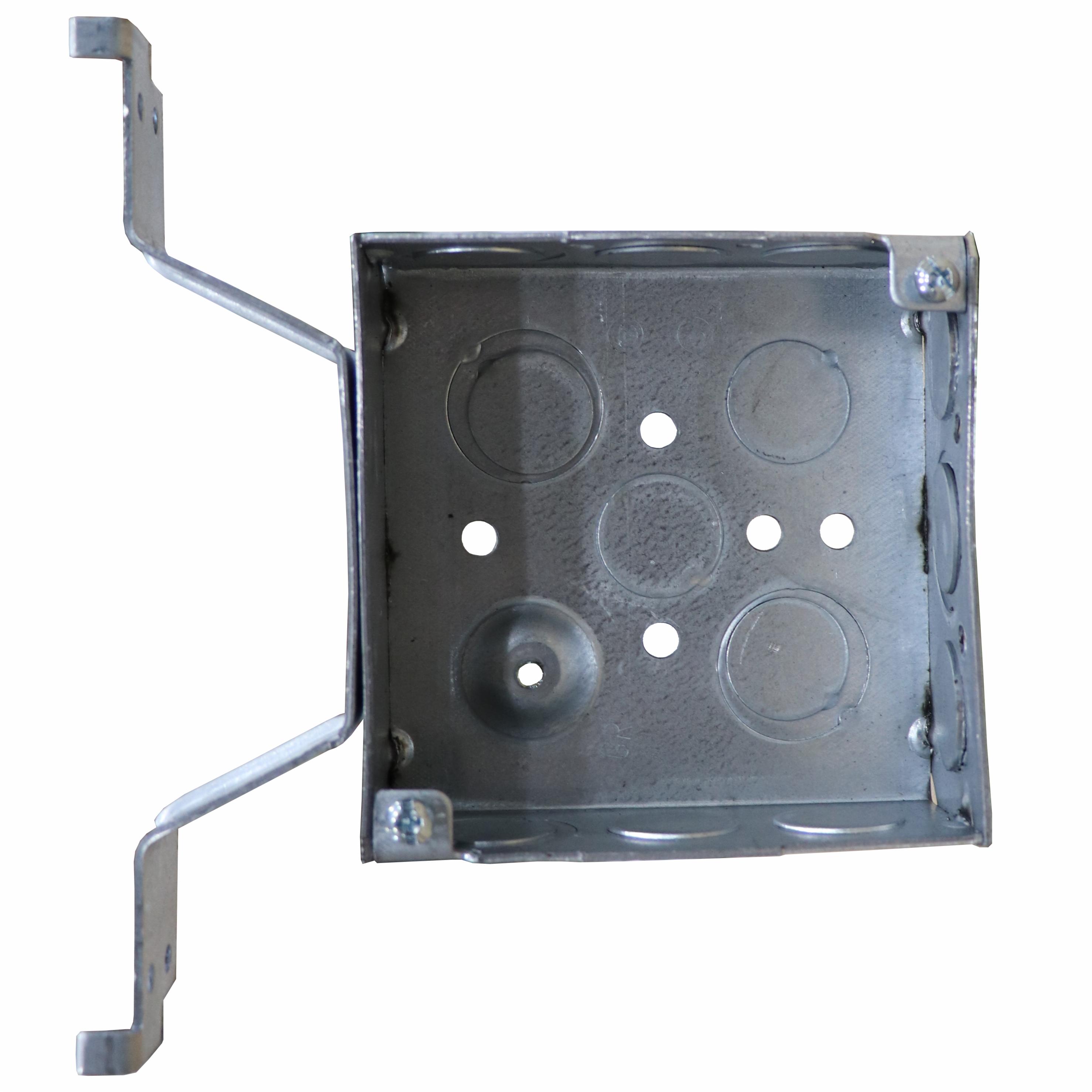 Garvin® 4 in Square Bracketed Box, 11 Knockouts, 1/2 and 3/4 in Conduit Knockouts, Ceiling Grid Span Bar, Steel, 3-1/2 in D