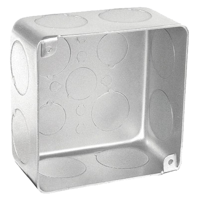 Garvin® Square Plenum Box, 13 Knockouts, 1/2 to 1 in Conduit Knockouts, 30 cu-in, Drawn, Steel, Galvanized, 4 in H x 4 in W x 2-1/8 in D