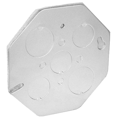 Garvin® Plenum Octagon Box Cover, 5 Knockouts, 1/2 in and 3/4 in Conduit Knockouts, Flat, Steel, 4 in H x 4 in W